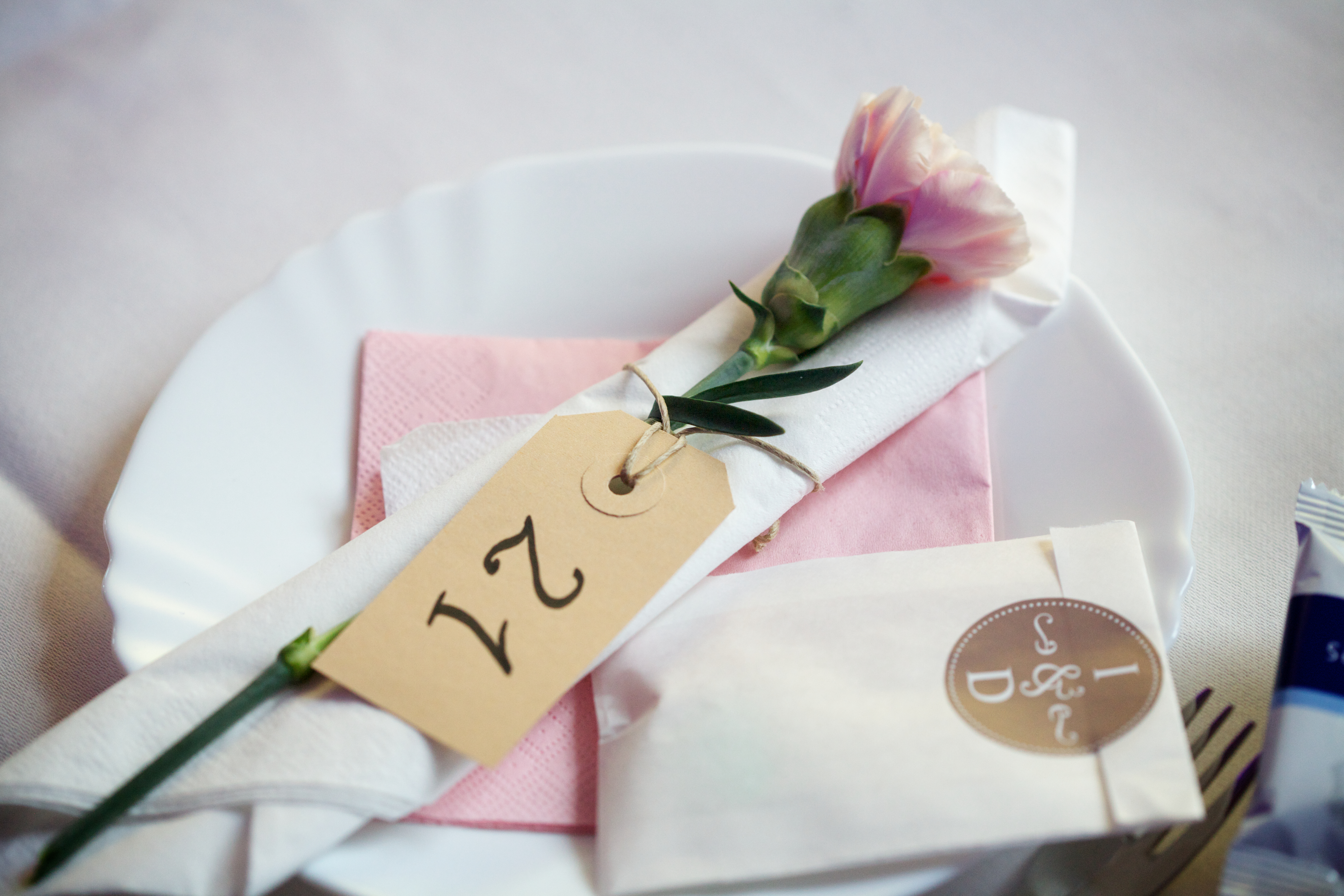 Wenn das Essen steht darf die Deko natürlich nicht fehlen. Das Farbkonzept basierte auf leichten pastelligen Tönen (so wie die Cupcakes), klassischen, aber lockeren Blumengestecken und einigen Vintage I-Tüpfelchen.