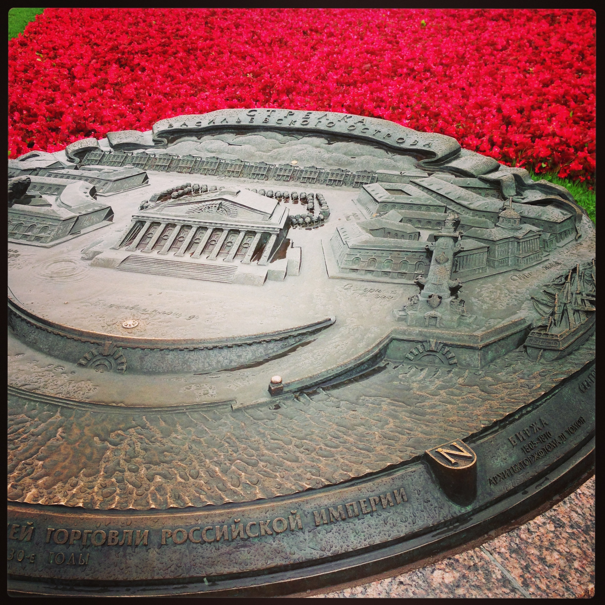 Eine weitere Sehenswürdigkeit an der Newa ist die alte Effektenbörse. Vor der Börse ist ein kleiner Park, der wie ihr seht im sozialistischen Rot bepflanzt ist. Die Börse steht unter Denkmalschutz und momentan wird verhandelt, ob sie ein Museum bleibt, oder ob wirklich wieder eine Börse hier Einzug hält.