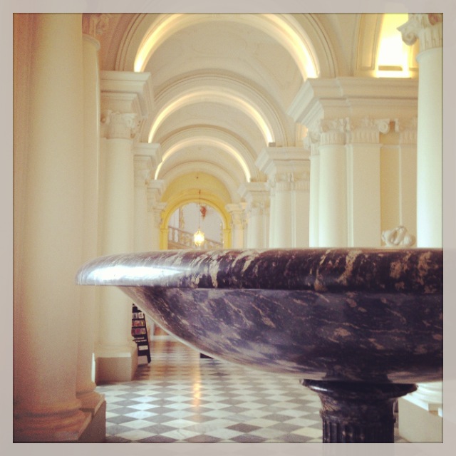 Man darf in der Eremitage eigentlich nicht fotografieren, aber gegen 5 Euro Gebühr bekommt man einen kleinen Aufkleber für seine Kamera und dann darf man doch Bilder machen und diese 5 Euro sollte wirklich jeder zahlen, denn man kann sich gar nicht satt sehen an all den Gemälden und Skulpturen, den prachtvollen Decken und Böden und einfach an der Eremitage als Gesamtkunstwerk.