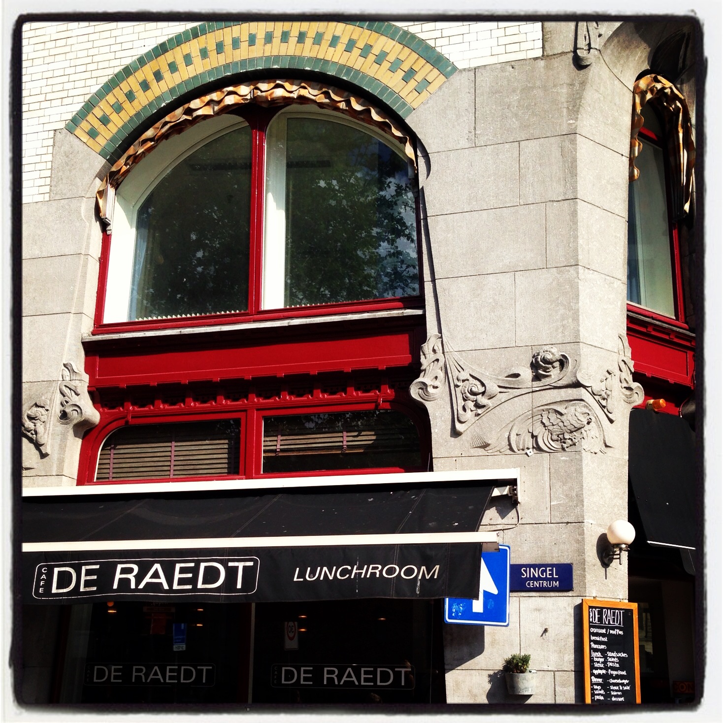An unserem zweiten Tag hat die Sonne so schön geschienen, dass wir umbedingt an einer Gracht zu Mittag essen wollten. Durch Zufall haben wir das Café de Raedt gefunden, was direkt am Canal an der Raadhuisstraat 6 liegt und wo man sowohl belegte Brote, als auch Salate und warme Gericht bekommt. Ich hatte den Salat mit Ziegenkäse, Honig, gegrilltem Gemüse und Pinienkernen für 9,00 und einen Milchkaffee (holl. koffie verkeerd).