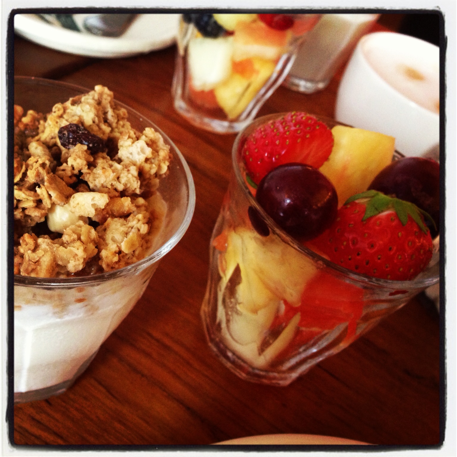 Wir haben an unserem letzten Tag bei La Place gefrühstückt und können es nur sehr empfehlen. Für 3,95 kann man sich vom Buffet 7 Teile aussuchen (Cappuccino, Gebäck, Rührei, Süßes, Müsli, Joghurt, Obst etc.) und jedes weitere Frühstücksteil kostet 50 cent. Für 4,45 habe ich dann ein volles Tablett mit super leckeren Sachen bekommen (Brötchen, Omelette, Brie, Butter, Müsli mit Joghurt, Obstsalat, Schokoplunder und Cappuccino) und die Räume sind wirklich ansprechend gestaltet.