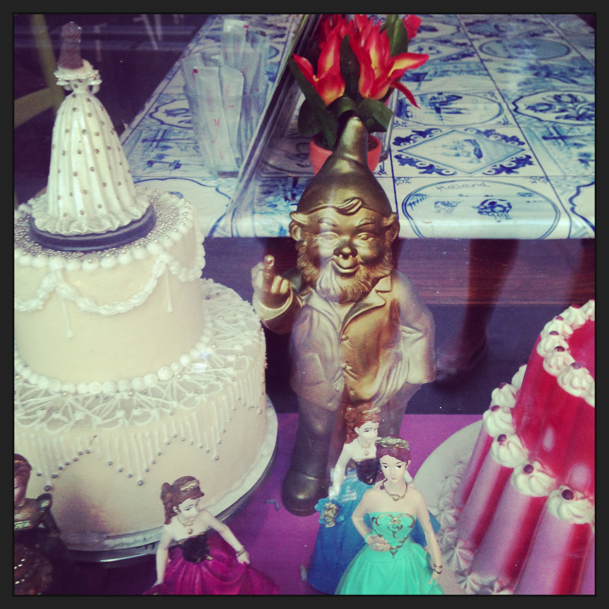 IM Café „De Taart van m´n Tante“ wird man von einem skurrilen Gartenzwerg „begrüßt“ und kann kunstvolle Torten bestaunen und verkosten. Besonders für Kitsch-Liebhaber und Freunde von Skurrilem zu empfehlen.