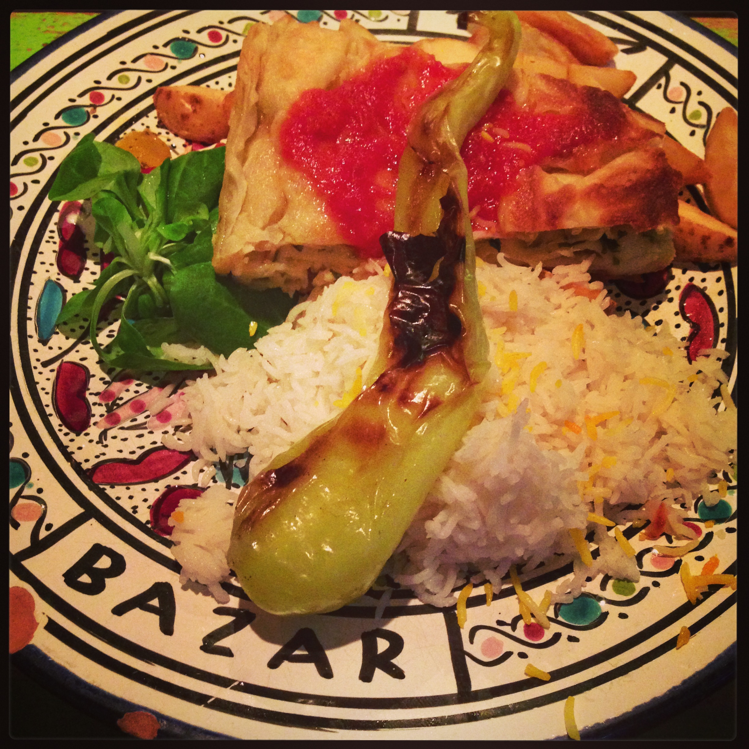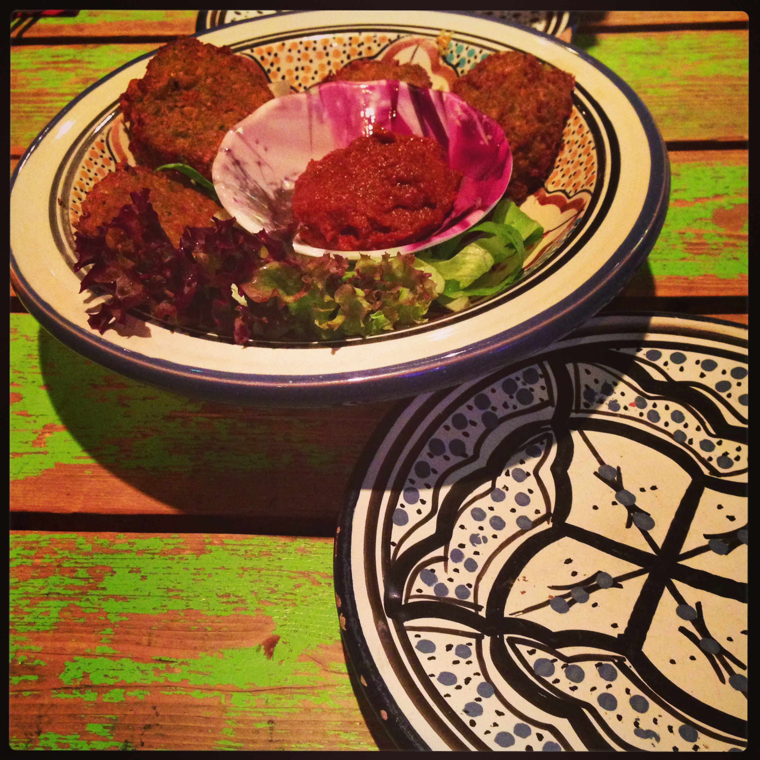 Für uns gab es als Vorspeise Falafel mit teuflisch scharfer Harissa und zum Hautgang Feta und Spinat in Blätterteig.
