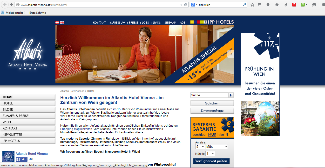 In der aktuellen Frühjahrssaison (Saison B 2.1 -30.4) kostet ein Komfortzimmer Doppel 138 Euro und ein Superior Zimmer 148 Euro. Sicher kann man auch günstigere Hotels finden, aber die Lage ist wirklich perfekt und man kann zu Fuß in die Stadt laufen, das Museumsquartier ergründen und auf der Mariahilferstraße einkaufen und bummeln gehen. Wer sich noch spontan überlegt, dieses Jahr den Eurovision Song Contest in der Wiener Stadthalle zu besuchen, der könnte kaum ein besseres Hotel finden, denn die Stadthalle – in welcher der ESC 2015 stattfindet – befindet sich fußläufig nur 2 Minuten vom Hotel entfernt .