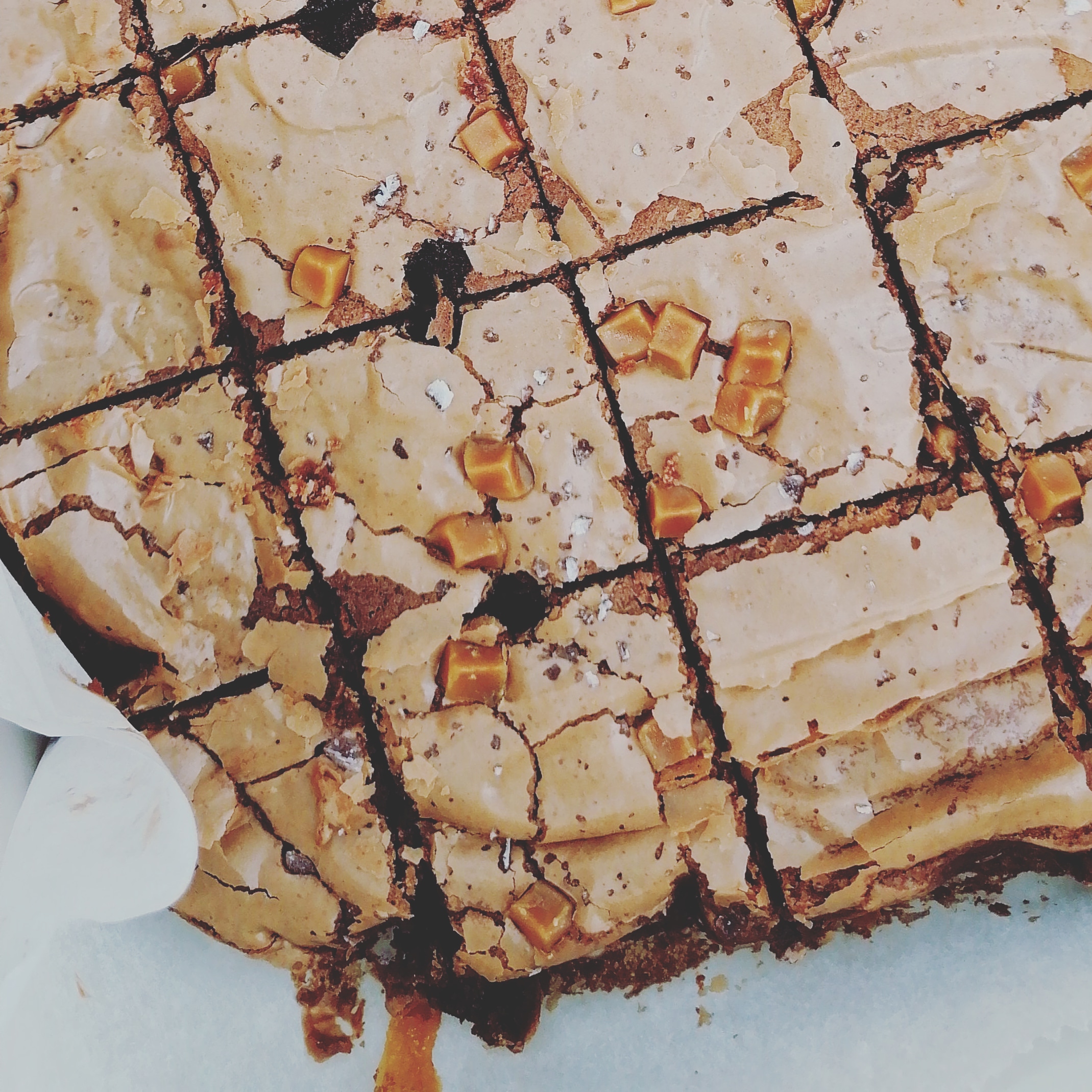 das erste Laub knistert schon, wenn der Wind die Straßen entlang fährt und die Bäume kleiden sich langsam in ihr strahlend gelb-rotes Kleid und so rückt auch die Zeit näher, in der man sich nach einem herbstlichen Spaziergang unter eine Wolldecke kuschelt, das Lieblingsbuch durchschmökert oder einen schönen Film schaut und dabei vielleicht eine herrliche Tasse Earl Grey und ein Stück selbstgebackenen Kuchen genießt. Seit langem liebe ich alles mit salted caramel, eine Geschmackskombination, die in England schon lange Tradition hat und so langsam aber sicher auch zu uns rüberkommt: Fudge, Pudding, Toffees, Latte Macchiato, you name it, I buy it. Im Winter lasse ich euch an meiner selbstgekochten Salted Caramel Sauce teilhaben, die man wunderbar über jegliches Gebäck oder Eis drapieren kann, heute gibt es aber das Rezept für meine heiß geliebten Brownies und natürlich diesmal mit Karamell und Meersalz. Lasst es euch schmecken.