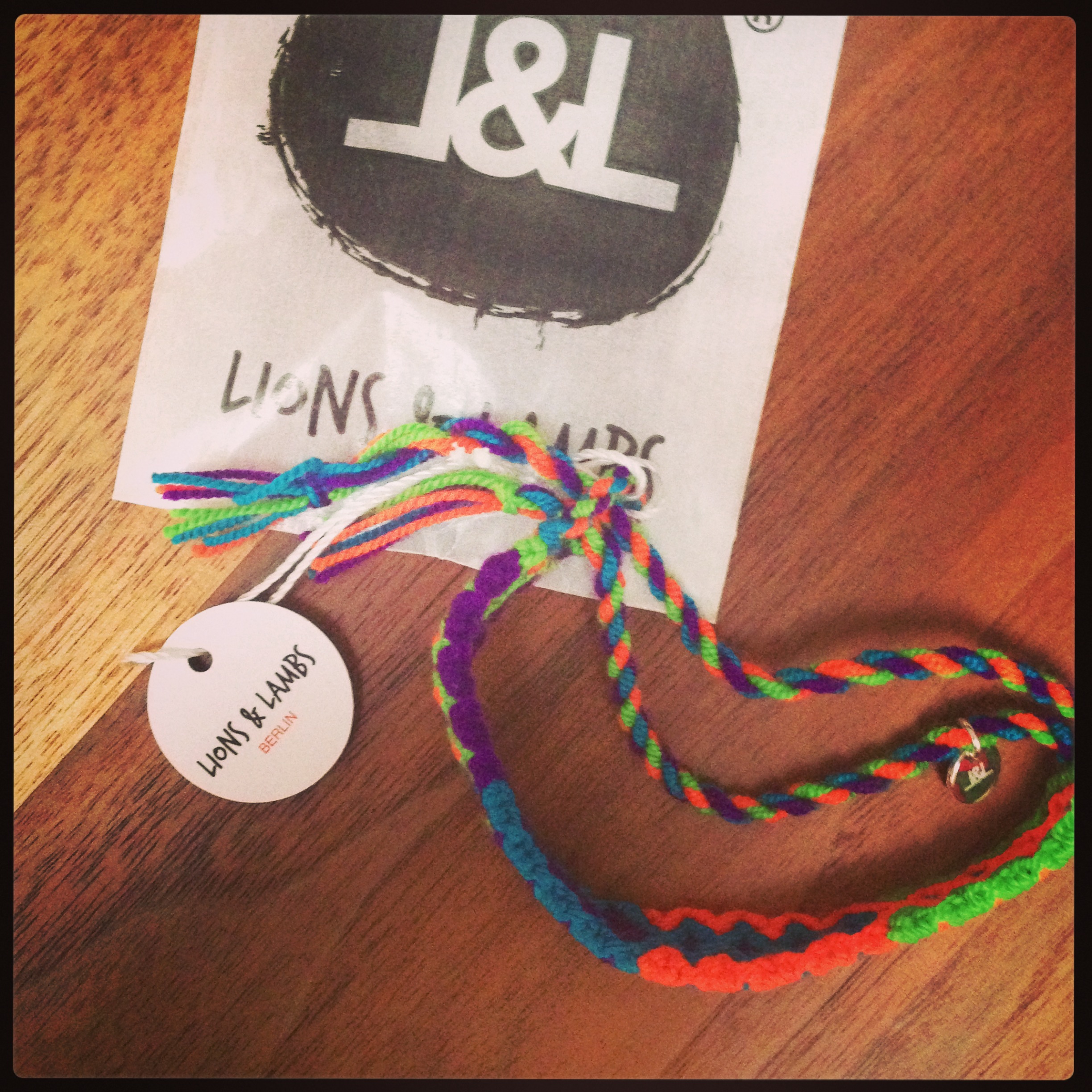 Das bringt mich wieder zum Gewinnspiel! Die Armbänder haben mich nämlich direkt an die Freundschaftsarmbänder erinnert, die ich mit meinen Freundinnen und meiner großen Schwester in den 90er Jahren zuhauf geflochten geknotet habe. Und da ich zu meinem Geburtstag so reich beschenkt wurde (materiell und persönlich:-)) –  und da geteiltes Glück noch schöner ist – bekommt ihr nun auch die Chance, etwas zu gewinnen und zwar diese zwei schönen knallig bunten Lions&Lambs Armbänder: